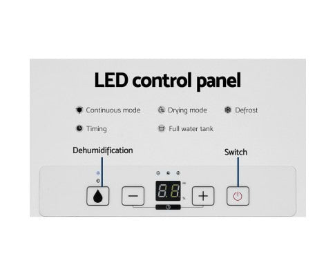 High daily moisture removal — 12L capacity: Designed to assist with removing up to 12L per day under rated conditions in damp areas.