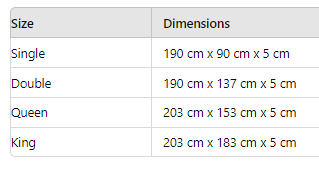 - Available in Multiple Sizes: Single, King Single, Double, Queen, and King.