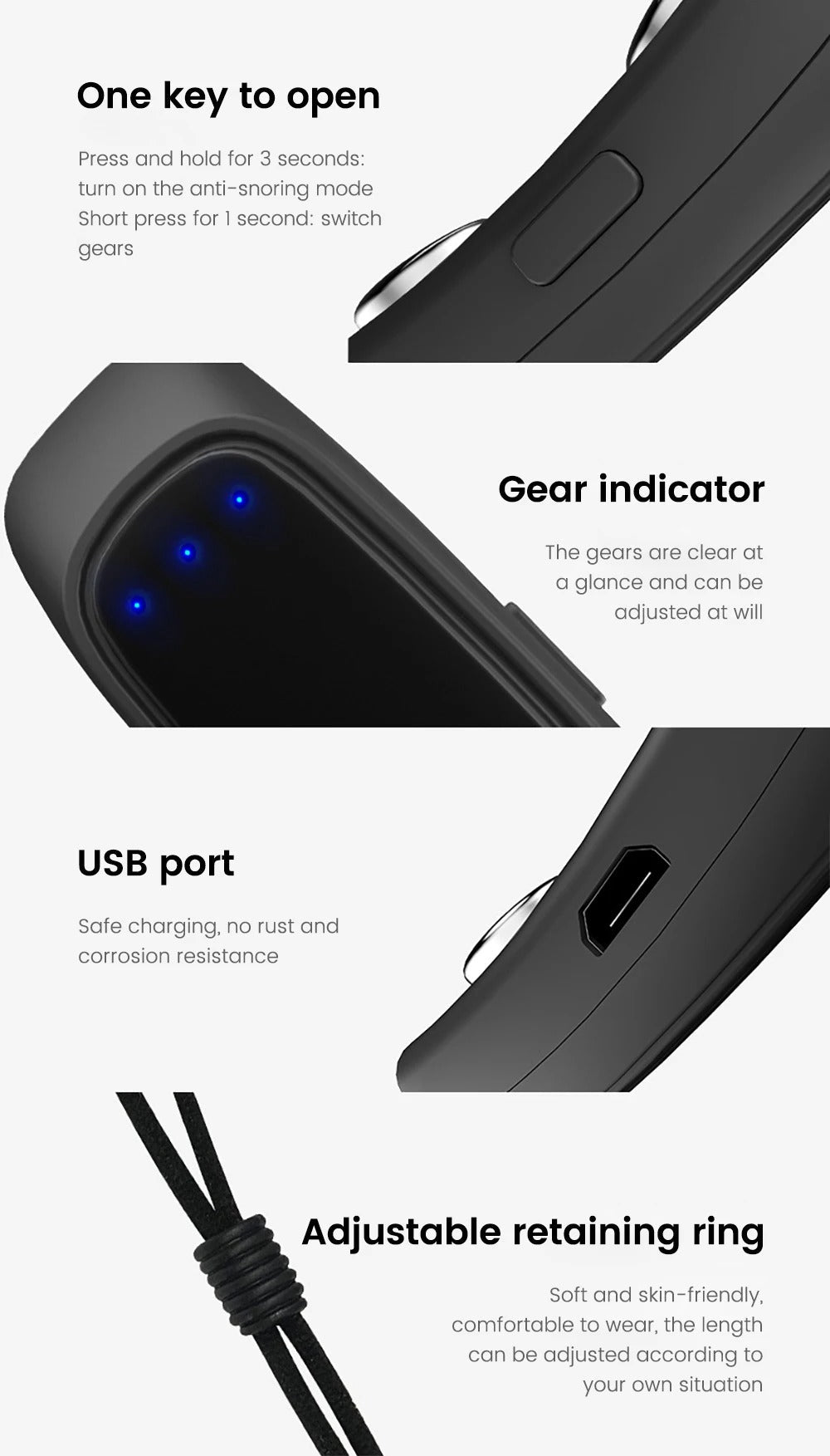 In the Box: Intelligent anti-snoring ear-hook device, USB data cable and instructions.