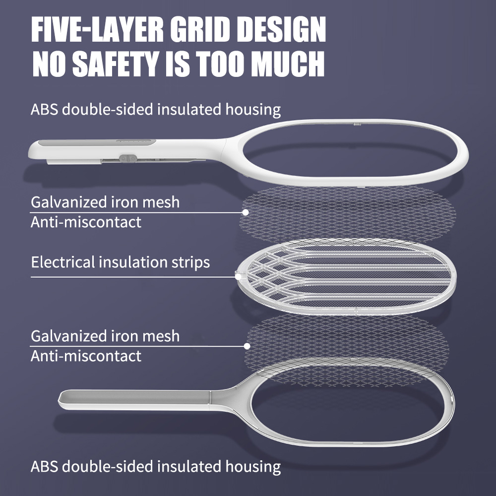 Smart luring LEDs: Six violet LED beads help attract mosquitoes and flies toward the grid for more efficient, low-effort trapping.