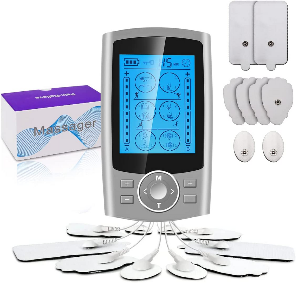 Busy days and tense muscles can snowball into nagging discomfort. This dual-channel TENS/EMS unit delivers gentle electrical pulses through reusable pads to stimulate nerves and activate muscles. With 36 guided modes and precise intensity control, it helps support relief, recovery, and a more confident routine.