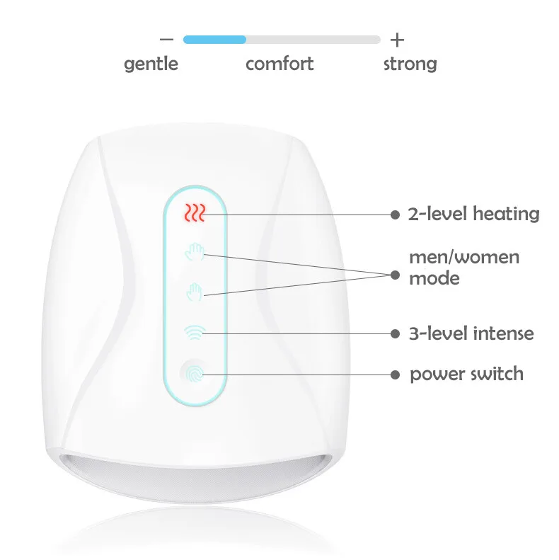 Personalised Comfort Controls — descriptor: Choose three intensities and two heat levels to refine pressure and warmth for your preferred comfort zone.